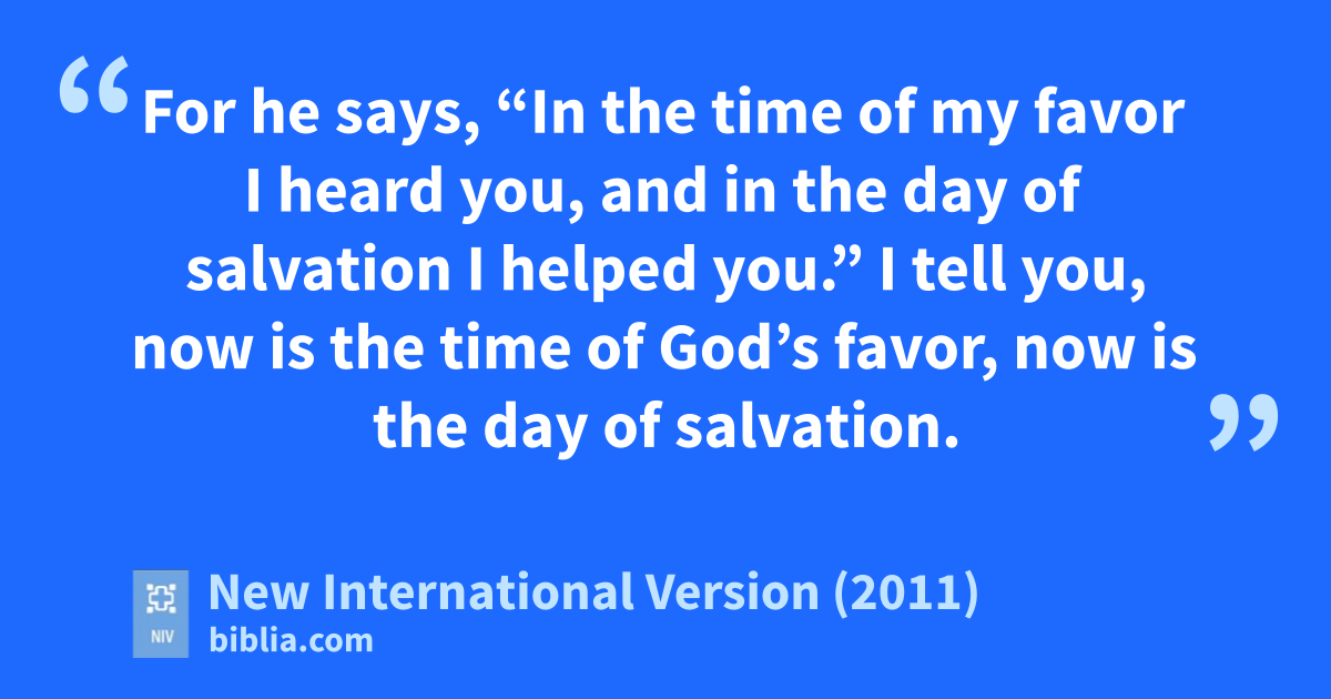 I tell you, now is the time of God’s favor, now is the day of salvation.