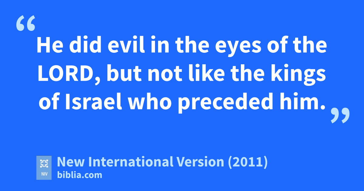 17 In the twelfth year of Ahaz king of Judah, Hosheaf son of Elah became king of Israel in Samaria, and he reigned nine years. 2 He did evilg in the eyes of the Lord, but not like the kings of Israel who preceded him.