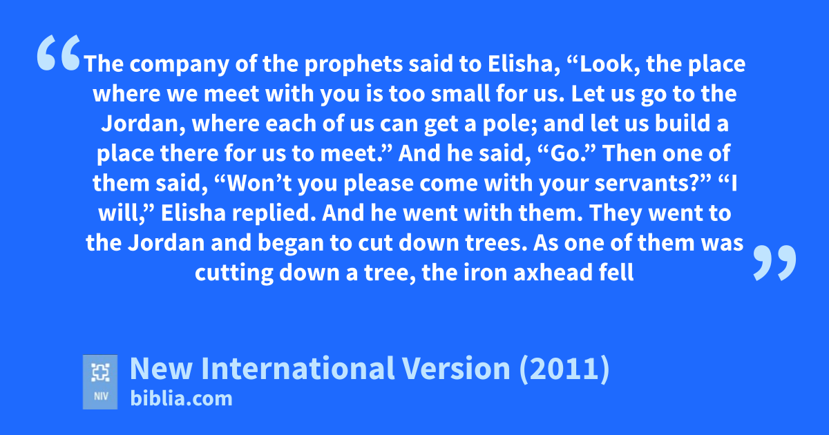 6 The companyl of the prophets said to Elisha, “Look, the place where we meet with you is too small for us. 2 Let us go to the Jordan, where each of us can get a pole; and let us build a place there for us to meet.”