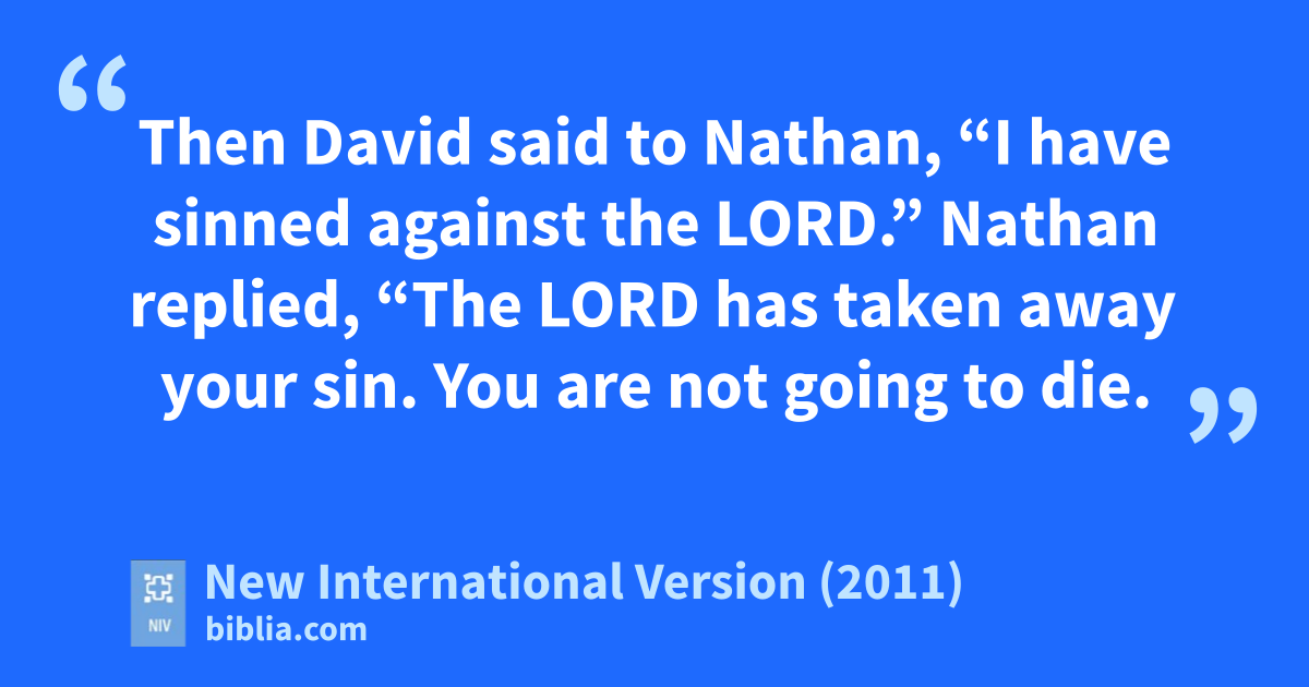 Nathan replied, “The Lord has taken awaye your sin.f You are not going to die.g 14 But because by doing this you have shown utter contempt fora the Lord,h the son born to you will die.”