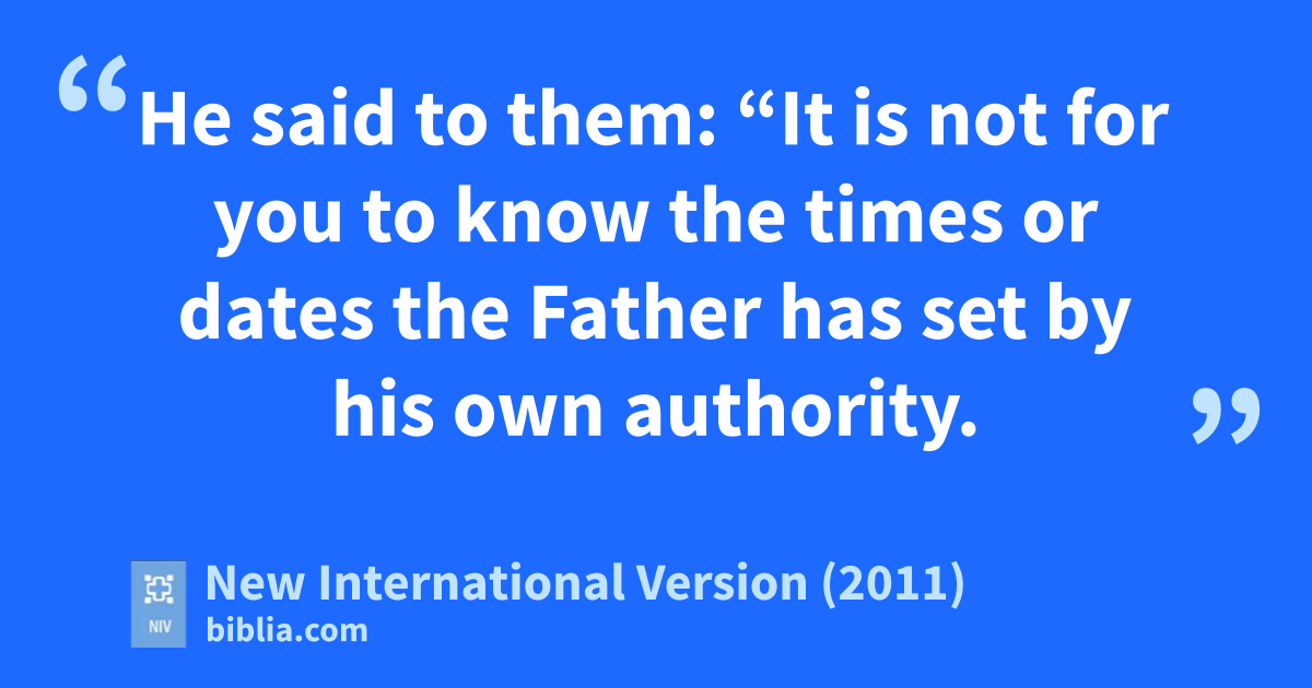 7 He said to them: “It is not for you to know the times or dates the Father has set by his own authority.n 8 But you will receive power when the Holy Spirit comes on you;o and you will be my witnessesp in Jerusalem, and in all Judea and Samaria,q and to the ends of the earth.”r