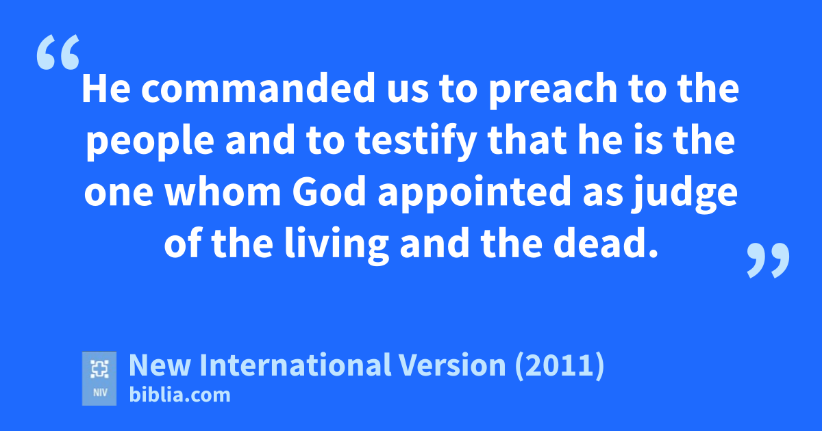 39 “We are witnessesz of everything he did in the country of the Jews and in Jerusalem. They killed him by hanging him on a cross,a 40 but God raised him from the deadb on the third day and caused him to be seen. 41 He was not seen by all the people,c but by witnesses whom God had already chosen—by us who ated and drank with him after he rose from the dead. 42 He commanded us to preach to the peoplee and to testify that he is the one whom God appointed as judge of the living and the dead.f 43 All the prophets testify about himg that everyoneh who believesi in him receives forgiveness of sins through his name.”j