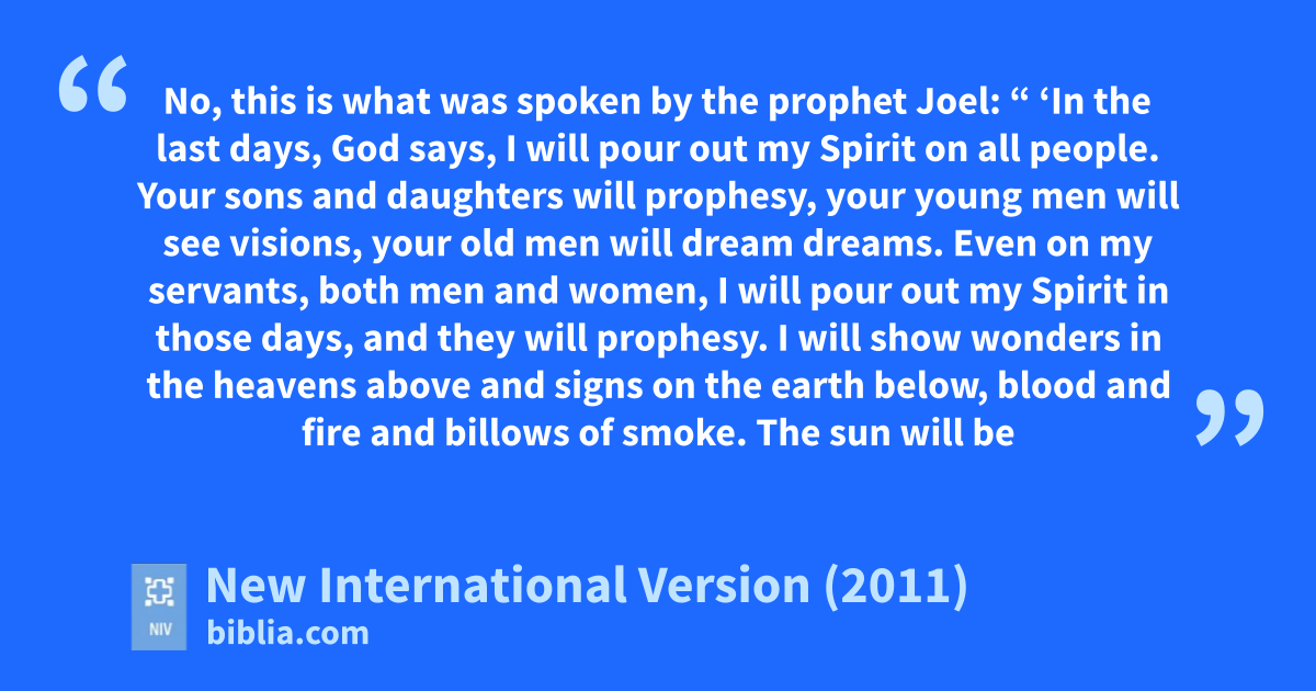14 Then Peter stood up with the Eleven, raised his voice and addressed the crowd: “Fellow Jews and all of you who live in Jerusalem, let me explain this to you; listen carefully to what I say. 15 These people are not drunk, as you suppose. It’s only nine in the morning!i 16 No, this is what was spoken by the prophet Joel: