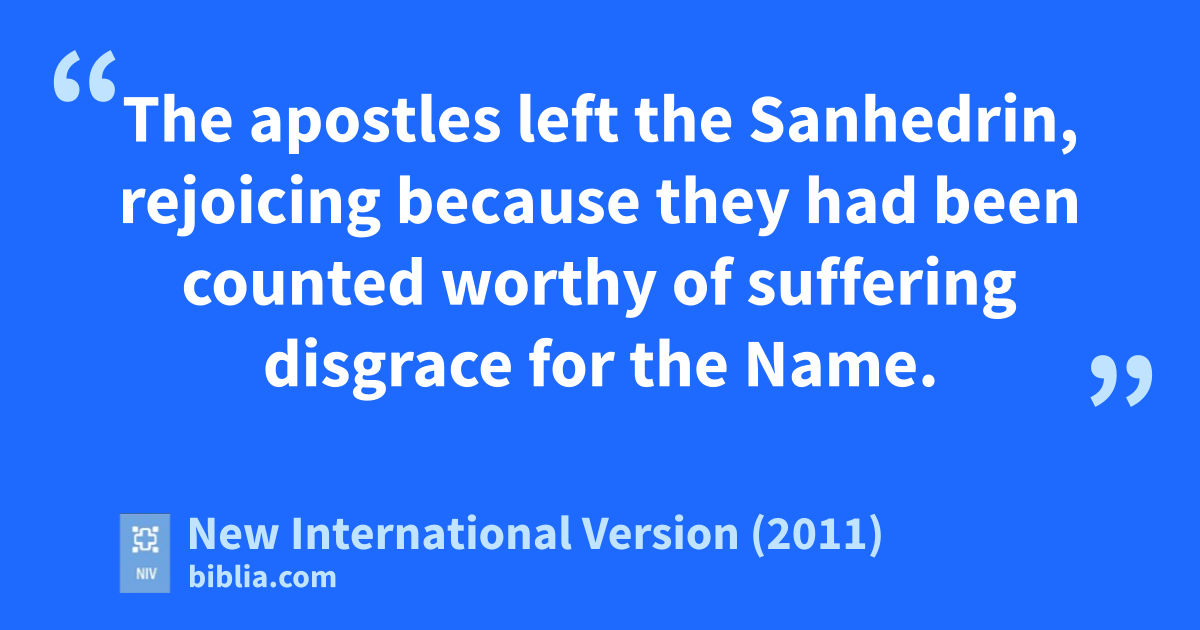 41 The apostles left the Sanhedrin, rejoicingy because they had been counted worthy of suffering disgrace for the Name.z 42 Day after day, in the temple courtsa and from house to house, they never stopped teaching and proclaiming the good newsb that Jesus is the Messiah.c