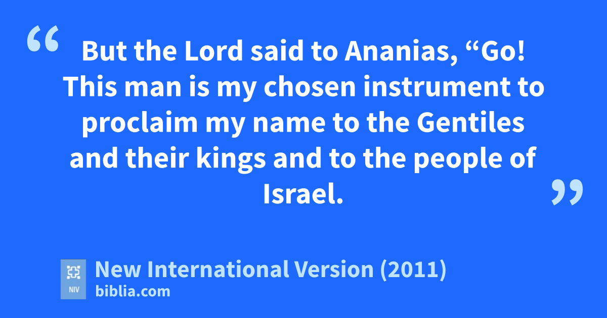 15 But the Lord said to Ananias, “Go! This man is my chosen instrumentv to proclaim my name to the Gentilesw and their kingsx and to the people of Israel. 16 I will show him how much he must suffer for my name.”y