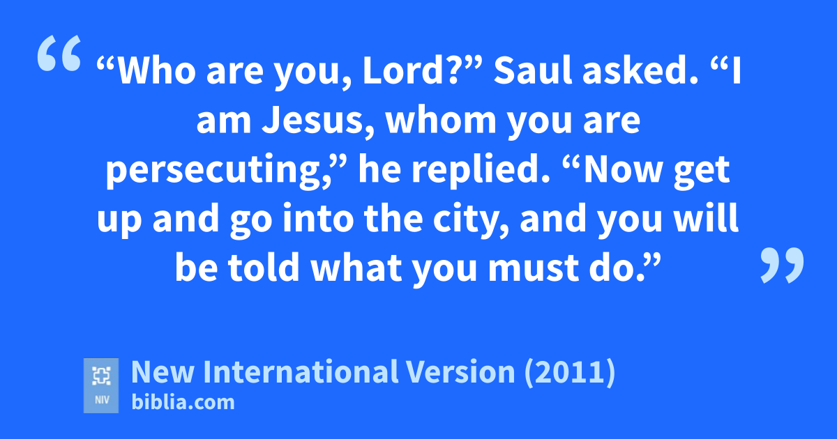 “I am Jesus, whom you are persecuting,” he replied. 6 “Now get up and go into the city, and you will be told what you must do.”k
