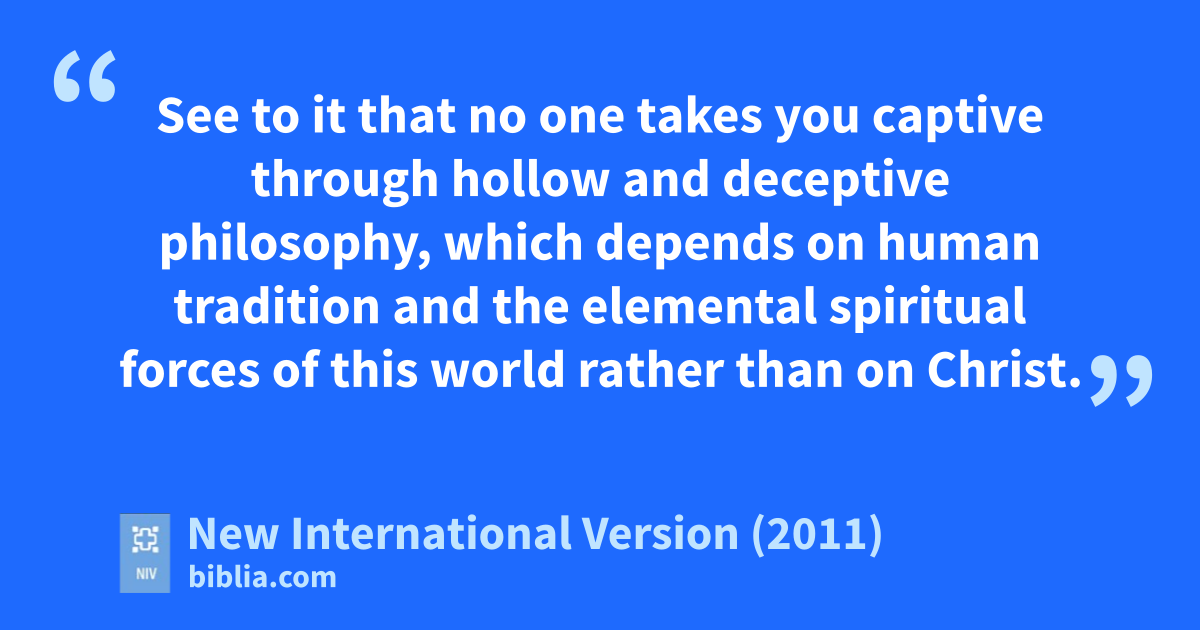 8 See to it that no one takes you captive through hollow and deceptive philosophy,m which depends on human tradition and the elemental spiritual forcesa of this worldn rather than on Christ.