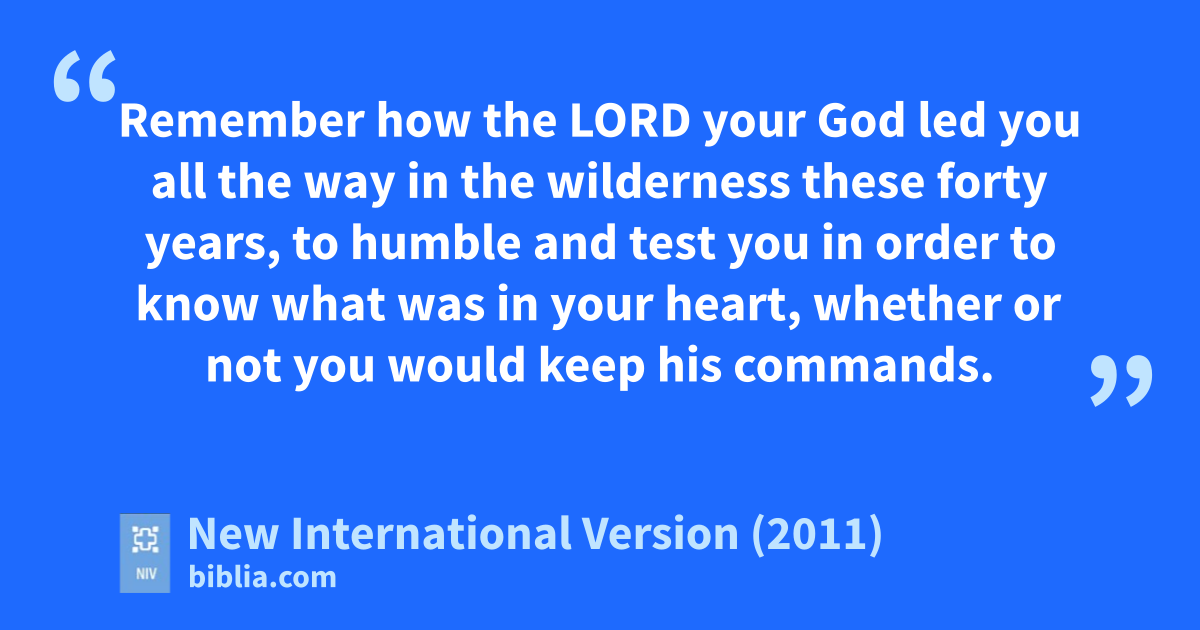 8 Be careful to follow every command I am giving you today, so that you may livet and increase and may enter and possess the land the Lord promised on oath to your ancestors.u 2 Remember how the Lord your God ledv you all the way in the wilderness these forty years, to humble and testw you in order to know what was in your heart, whether or not you would keep his commands. 3 He humbledx you, causing you to hunger and then feeding you with manna,y which neither you nor your ancestors had known, to teachz you that man does not live on breada alone but on every word that comes from the mouthb of the Lord.c 4 Your clothes did not wear out and your feet did not swell during these forty years.d 5 Know then in your heart that as a man disciplines his son, so the Lord your God disciplines you.e