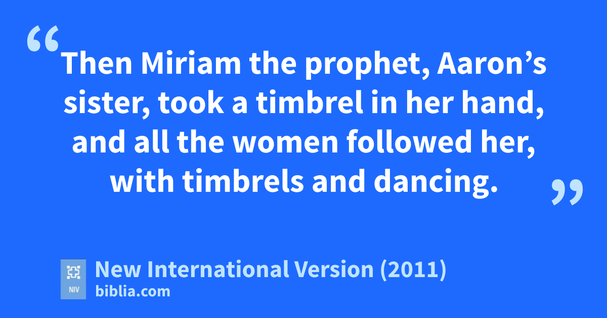 19 When Pharaoh’s horses, chariots and horsemene went into the sea,q the Lord brought the waters of the sea back over them, but the Israelites walked through the sea on dry ground.r 20 Then Miriams the prophet,t Aaron’s sister, took a timbrel in her hand, and all the women followed her, with timbrelsu and dancing.v 21 Miriam sangw to them: