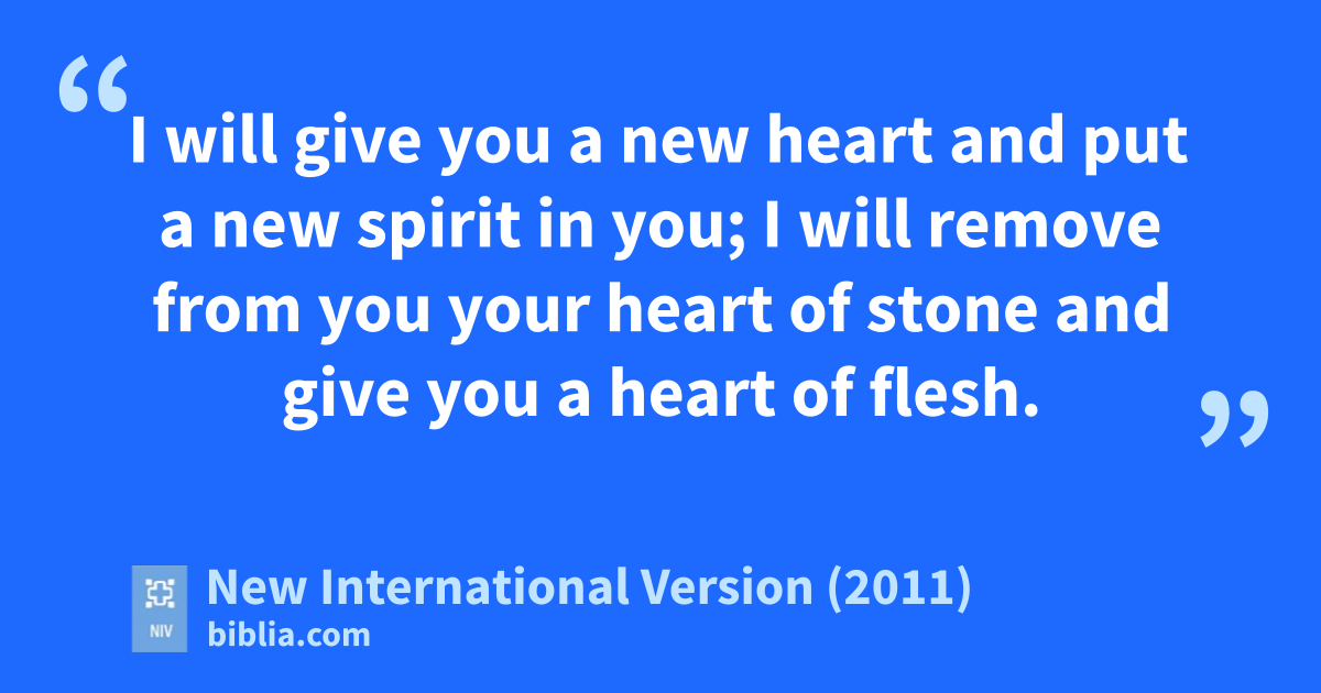 24 “ ‘For I will take you out of the nations; I will gather you from all the countries and bring you back into your own land.v 25 I will sprinklew clean water on you, and you will be clean; I will cleansex you from all your impuritiesy and from all your idols.z 26 I will give you a new hearta and put a new spirit in you; I will remove from you your heart of stoneb and give you a heart of flesh.c 27 And I will put my Spiritd in you and move you to follow my decreese and be careful to keep my laws.f 28 Then you will live in the land I gave your ancestors; you will be my people,g and I will be your God.h 29 I will save you from all your uncleanness. I will call for the grain and make it plentiful and will not bring faminei upon you. 30 I will increase the fruit of the trees and the crops of the field, so that you will no longer suffer disgrace among the nations because of famine.j 31 Then you will remember your evil ways and wicked deeds, and you will loathe yourselves for your sins and detestable practices.k 32 I want you to know that I am not doing this for your sake, declares the Sovereign Lord. Be ashamedl and disgraced for your conduct, people of Israel!m