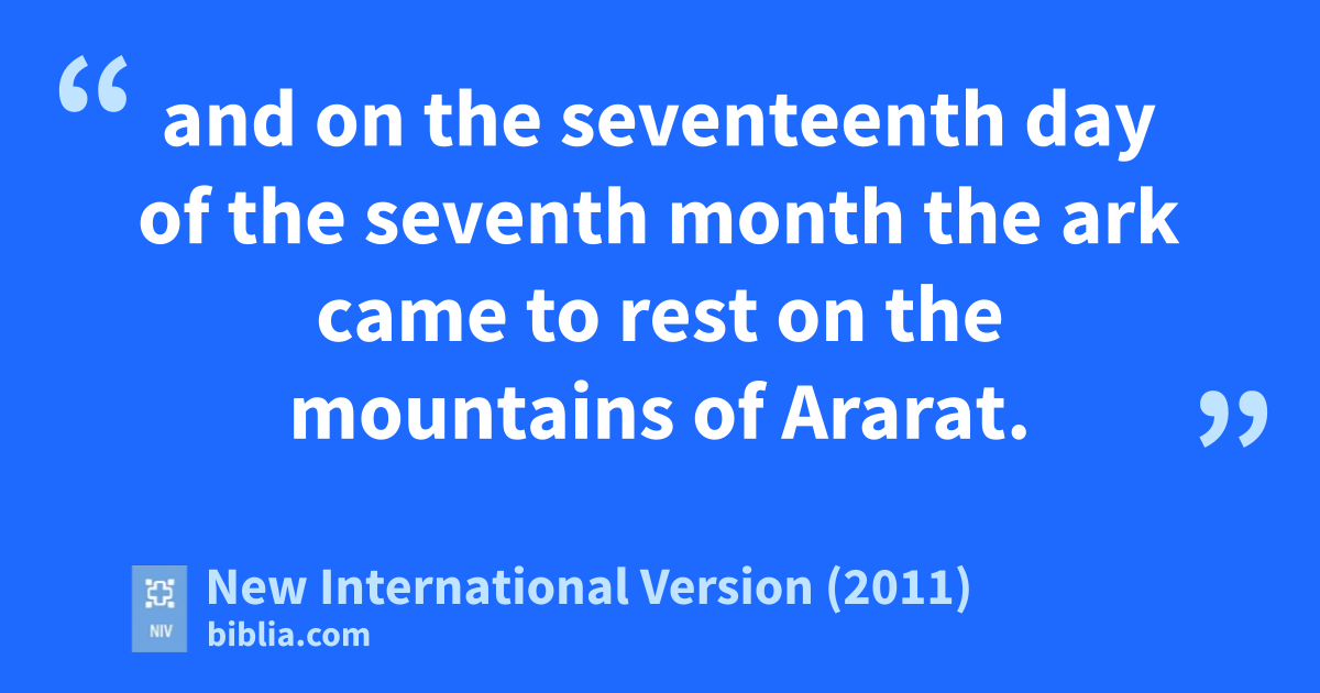 8 But God rememberedm Noah and all the wild animals and the livestock that were with him in the ark, and he sent a wind over the earth,n and the waters receded. 2 Now the springs of the deep and the floodgates of the heavenso had been closed, and the rainp had stopped falling from the sky. 3 The water receded steadily from the earth. At the end of the hundred and fifty daysq the water had gone down, 4 and on the seventeenth day of the seventh monthr the ark came to rest on the mountainss of Ararat.t 5 The waters continued to recede until the tenth month, and on the first day of the tenth month the tops of the mountains became visible.