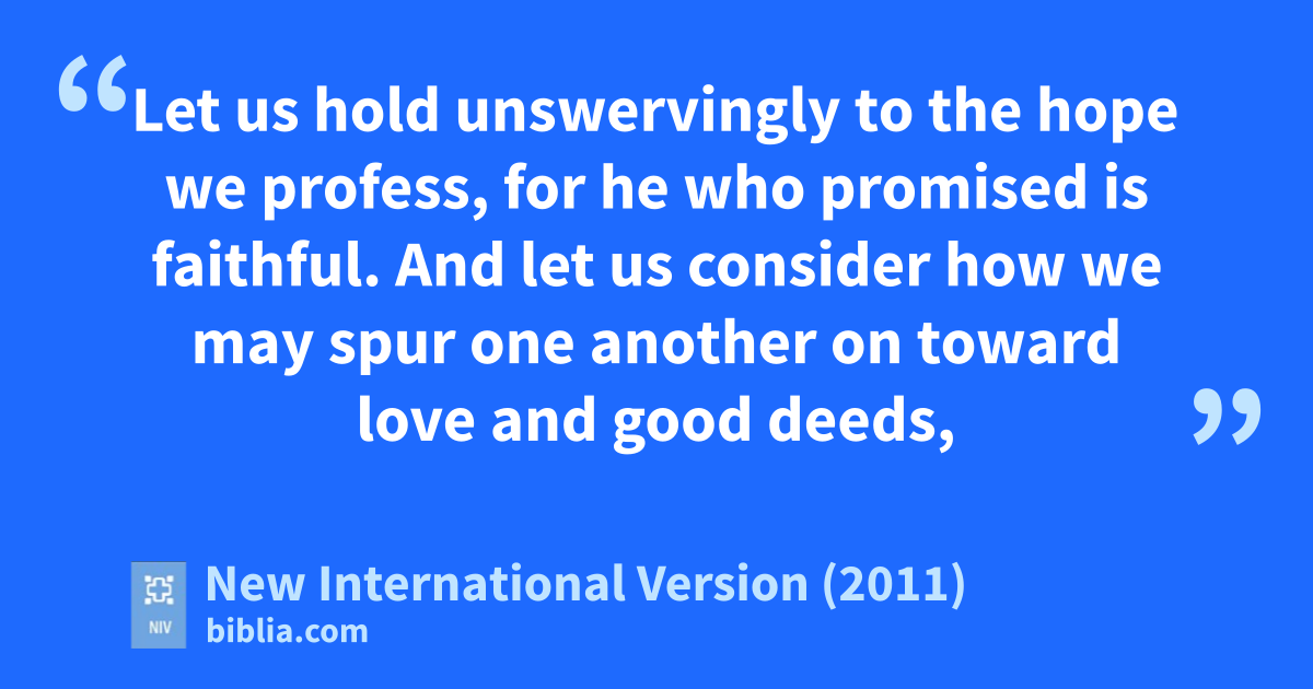 19 Therefore, brothers and sisters, since we have confidencep to enter the Most Holy Placeq by the blood of Jesus, 20 by a new and living wayr opened for us through the curtain,s that is, his body, 21 and since we have a great priestt over the house of God,u 22 let us draw near to Godv with a sincere heart and with the full assurance that faith brings,w having our hearts sprinkled to cleanse us from a guilty consciencex and having our bodies washed with pure water.y 23 Let us hold unswervingly to the hopez we profess,a for he who promised is faithful.b 24 And let us consider how we may spur one another on toward love and good deeds,c 25 not giving up meeting together,d as some are in the habit of doing, but encouraging one anothere—and all the more as you see the Day approaching.f