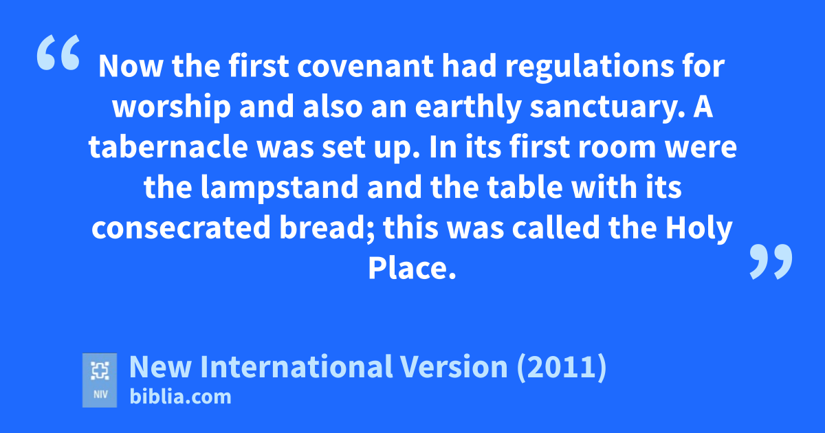 9 Now the first covenant had regulations for worship and also an earthly sanctuary.q 2 A tabernacler was set up. In its first room were the lampstands and the tablet with its consecrated bread;u this was called the Holy Place.v 3 Behind the second curtain was a room called the Most Holy Place,w 4 which had the golden altar of incensex and the gold-covered ark of the covenant.y This ark contained the gold jar of manna,z Aaron’s staff that had budded,a and the stone tablets of the covenant.b 5 Above the ark were the cherubim of the Glory,c overshadowing the atonement cover.d But we cannot discuss these things in detail now.