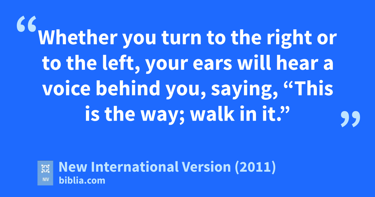 19 People of Zion, who live in Jerusalem, you will weep no more.n How gracious he will be when you cry for help!o As soon as he hears, he will answerp you. 20 Although the Lord gives you the breadq of adversity and the water of affliction, your teachersr will be hiddens no more; with your own eyes you will see them. 21 Whether you turn to the right or to the left, your ears will hear a voicet behind you, saying, “This is the way;u walk in it.” 22 Then you will desecrate your idolsv overlaid with silver and your images covered with gold;w you will throw them away like a menstrualx cloth and say to them, “Away with you!y”