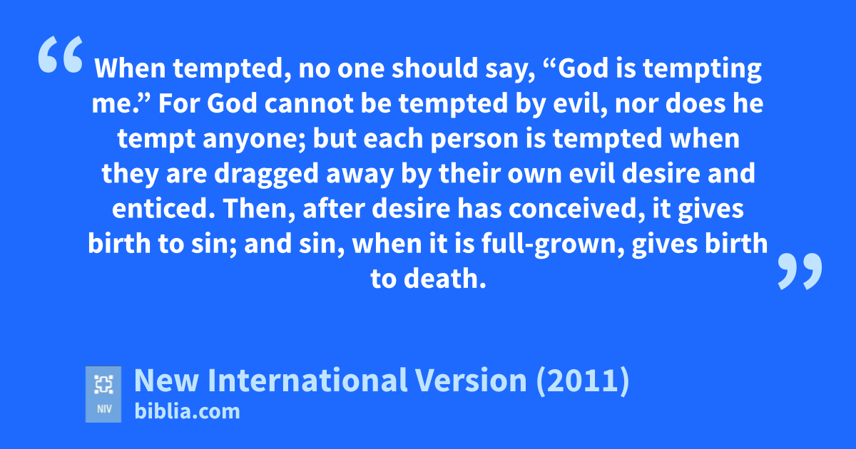 13 When tempted, no one should say, “God is tempting me.” For God cannot be tempted by evil, nor does he tempt anyone; 14 but each person is tempted when they are dragged away by their ownw evil desire and enticed. 15 Then, after desire has conceived, it gives birth to sin;x and sin, when it is full-grown, gives birth to death.y