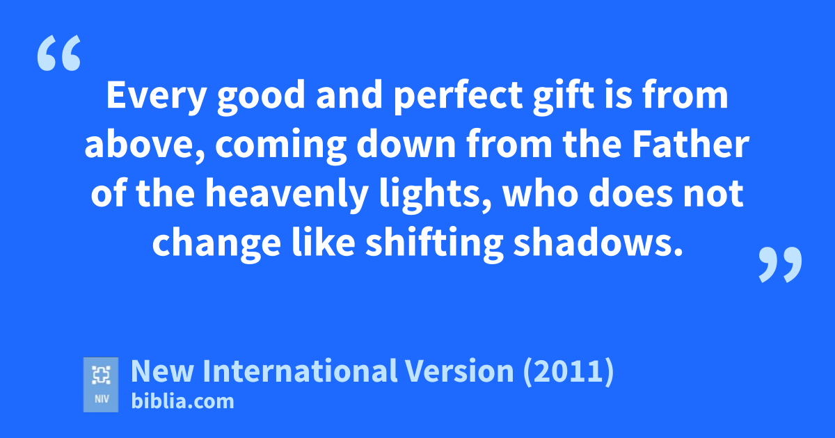16 Don’t be deceived,z my dear brothers and sisters.a 17 Every good and perfect gift is from above,b coming down from the Father of the heavenly lights,c who does not changed like shifting shadows. 18 He chose to give us birthe through the word of truth,f that we might be a kind of firstfruitsg of all he created.