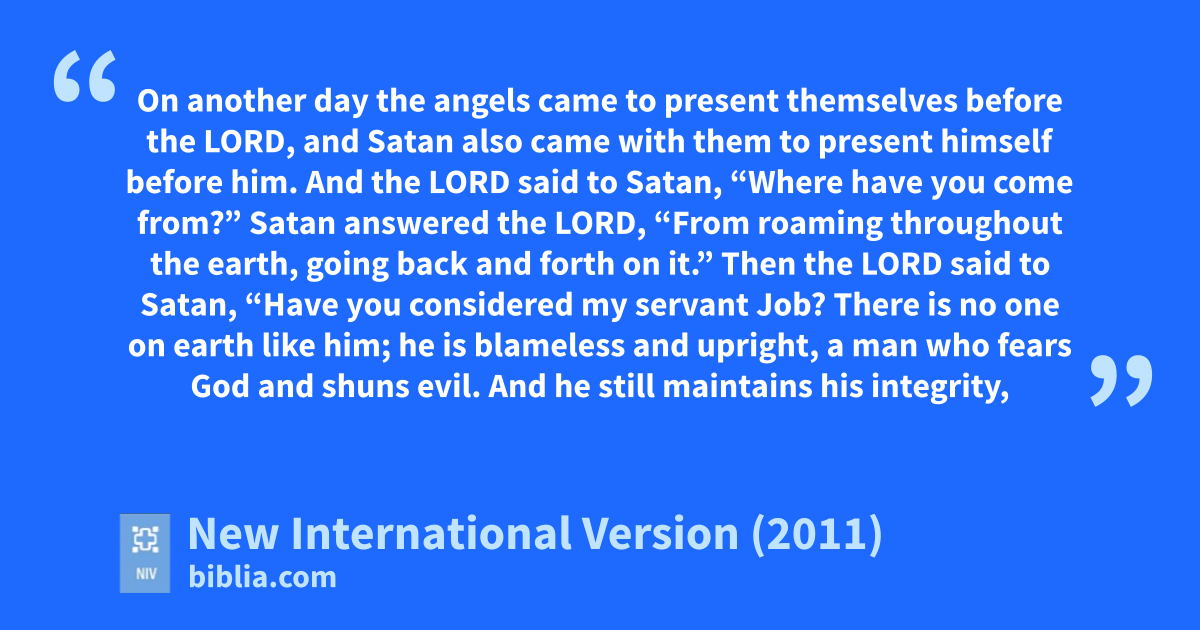 3 Then the Lord said to Satan, “Have you considered my servant Job? There is no one on earth like him; he is blameless and upright, a man who fears God and shuns evil.c And he still maintains his integrity,d though you incited me against him to ruin him without any reason.”e