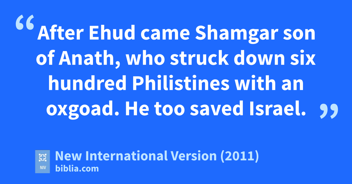 31 After Ehud came Shamgar son of Anath,o who struck down six hundredp Philistinesq with an oxgoad. He too saved Israel.