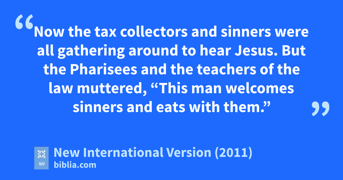 15 Now the tax collectorss and sinners were all gathering around to hear Jesus. 2 But the Pharisees and the teachers of the law muttered, “This man welcomes sinners and eats with them.”t