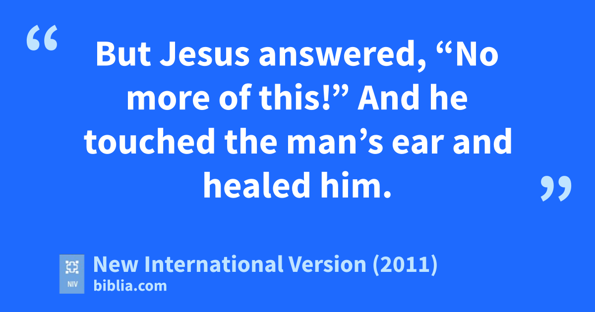 51 But Jesus answered, “No more of this!” And he touched the man’s ear and healed him.