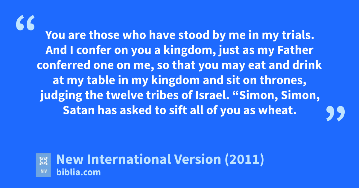 31 “Simon, Simon, Satan has askedo to sift all of you as wheat.p 32 But I have prayed for you,q Simon, that your faith may not fail. And when you have turned back, strengthen your brothers.”r