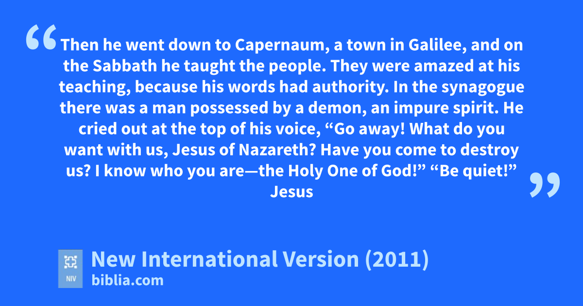 33 In the synagogue there was a man possessed by a demon, an impure spirit. He cried out at the top of his voice, 34 “Go away! What do you want with us,f Jesus of Nazareth?g Have you come to destroy us? I know who you areh—the Holy One of God!”i