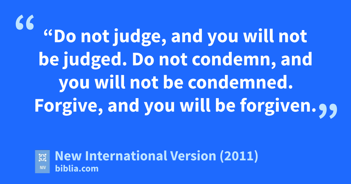 37 “Do not judge, and you will not be judged.m Do not condemn, and you will not be condemned. Forgive, and you will be forgiven.n 38 Give, and it will be given to you. A good measure, pressed down, shaken together and running over, will be poured into your lap.o For with the measure you use, it will be measured to you.”p