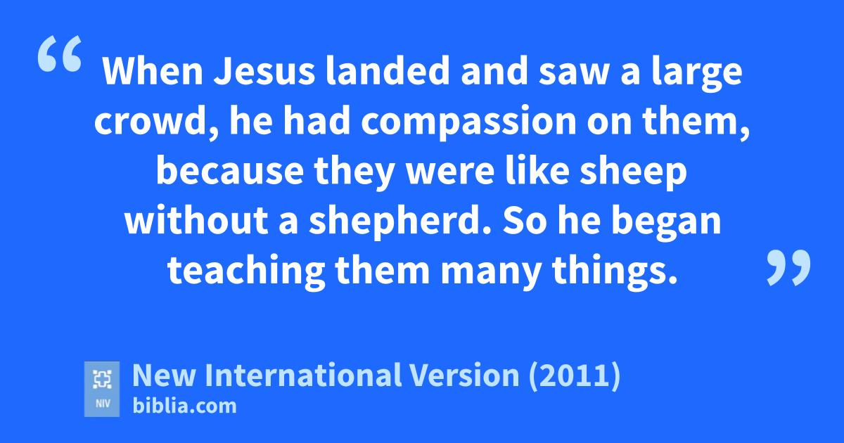 32 So they went away by themselves in a boatr to a solitary place. 33 But many who saw them leaving recognized them and ran on foot from all the towns and got there ahead of them. 34 When Jesus landed and saw a large crowd, he had compassion on them, because they were like sheep without a shepherd.s So he began teaching them many things.