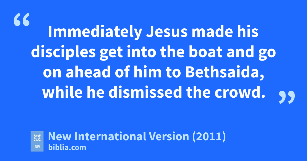 45 Immediately Jesus made his disciples get into the boatw and go on ahead of him to Bethsaida,x while he dismissed the crowd. 46 After leaving them, he went up on a mountainside to pray.y