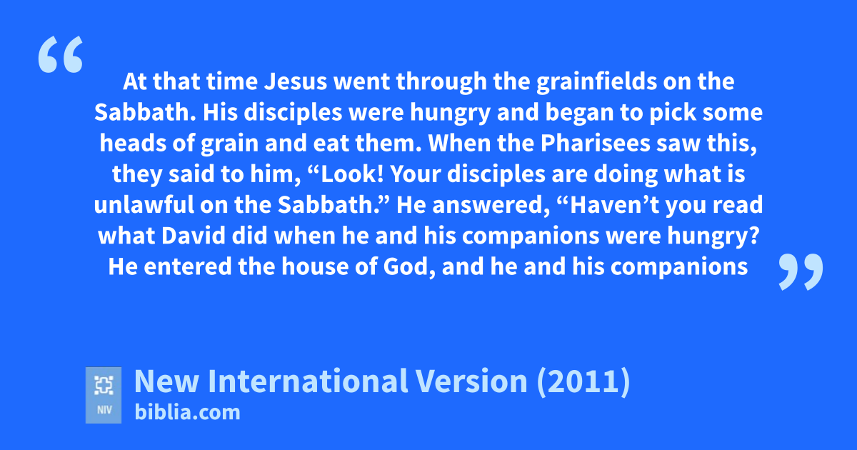 12 At that time Jesus went through the grainfields on the Sabbath. His disciples were hungry and began to pick some heads of grainx and eat them. 2 When the Pharisees saw this, they said to him, “Look! Your disciples are doing what is unlawful on the Sabbath.”y