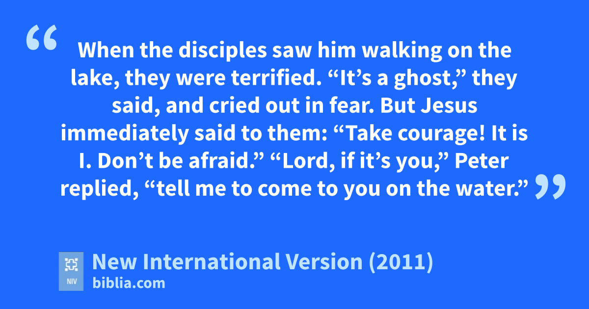 25 Shortly before dawn Jesus went out to them, walking on the lake. 26 When the disciples saw him walking on the lake, they were terrified. “It’s a ghost,”k they said, and cried out in fear.