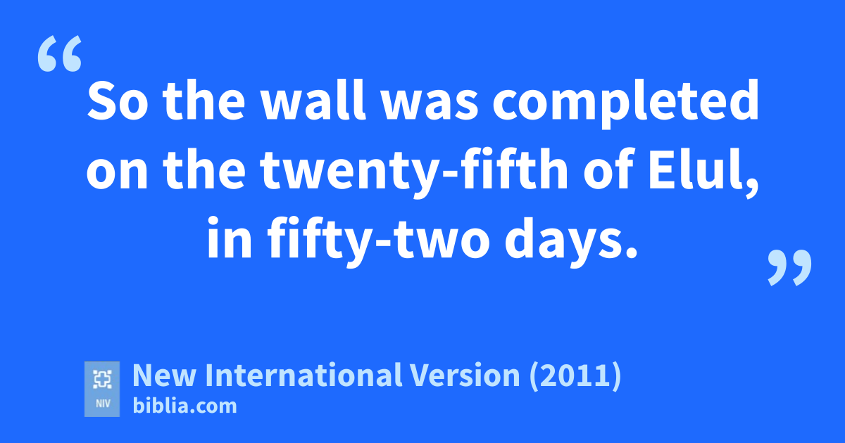 14 Remembera Tobiah and Sanballat,b my God, because of what they have done; remember also the prophetc Noadiah and how she and the rest of the prophetsd have been trying to intimidate me. 15 So the wall was completed on the twenty-fifth of Elul, in fifty-two days.