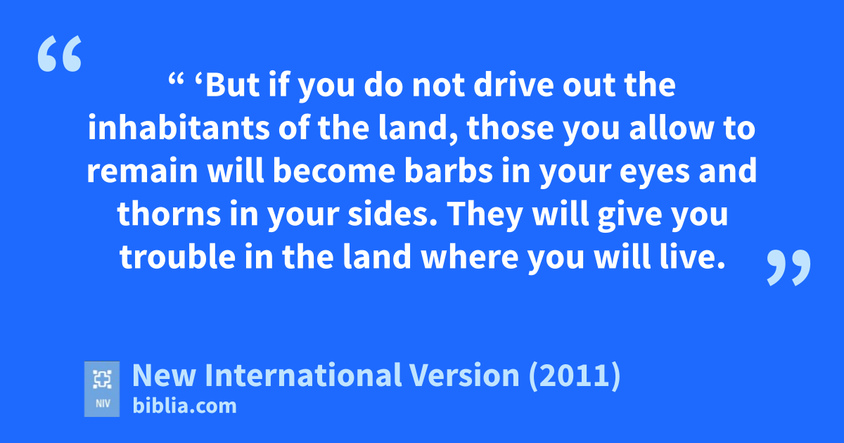 55 “ ‘But if you do not drive out the inhabitants of the land, those you allow to remain will become barbs in your eyes and thornsm in your sides. They will give you trouble in the land where you will live. 56 And then I will do to you what I plan to do to them.n’ ”