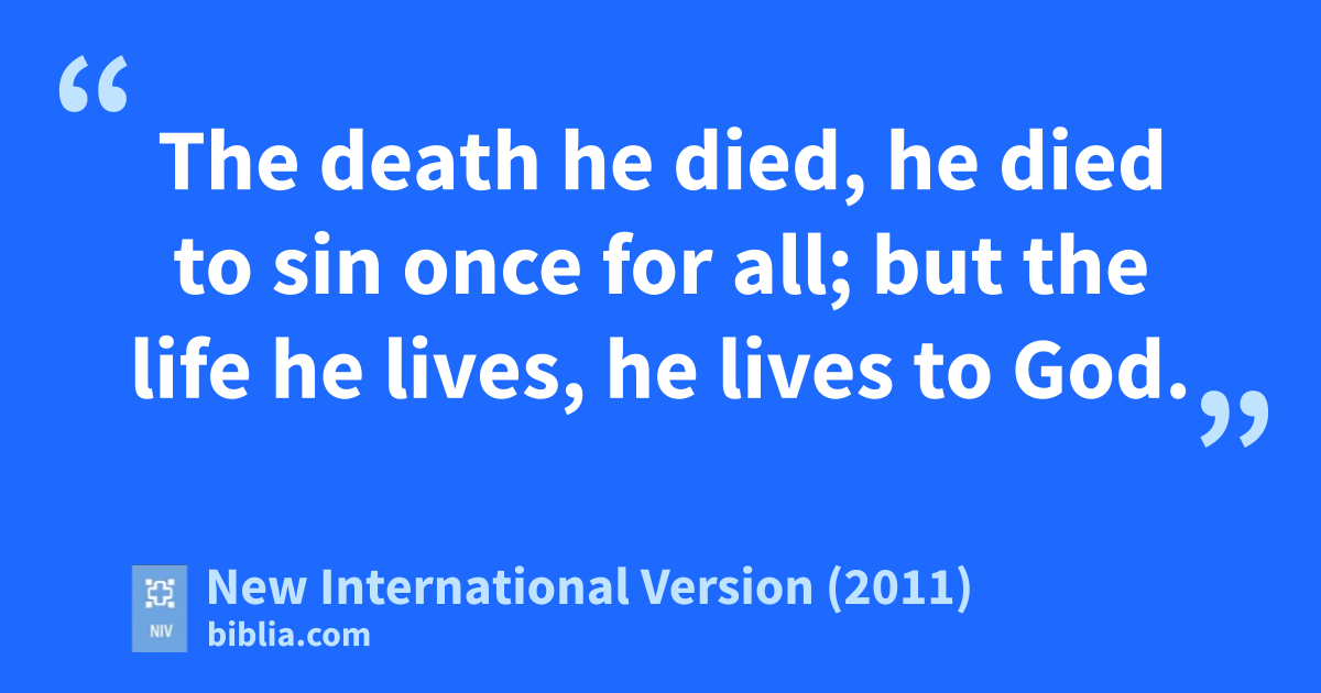 8 Now if we died with Christ, we believe that we will also live with him.l 9 For we know that since Christ was raised from the dead,m he cannot die again; death no longer has mastery over him.n 10 The death he died, he died to sino once for all;p but the life he lives, he lives to God.