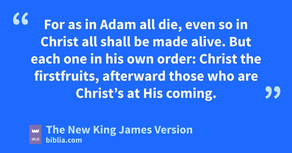 20 But now vChrist is risen from the dead, and has become wthe firstfruits of those who have 4fallen asleep. 21 For xsince by man came death, yby Man also came the resurrection of the dead. 22 For as in Adam all die, even so in Christ all shall zbe made alive. 23 But aeach one in his own order: Christ the firstfruits, afterward those who are Christ’s at His coming. 24 Then comes the end, when He delivers bthe kingdom to God the Father, when He puts an end to all rule and all authority and power. 25 For He must reign ctill He has put all enemies under His feet. 26 dThe last enemy that will be destroyed is death. 27 For e“He has put all things under His feet.” But when He says “all things are put under Him,” it is evident that He who put all things under Him is excepted. 28 fNow when all things are made subject to Him, then gthe Son Himself will also be subject to Him who put all things under Him, that God may be all in all.