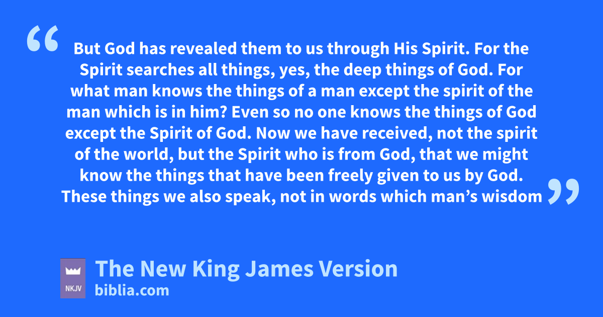 10 But jGod has revealed them to us through His Spirit. For the Spirit searches all things, yes, the deep things of God. 11 For what man knows the things of a man except the kspirit of the man which is in him? lEven so no one knows the things of God except the Spirit of God. 12 Now we have received, not the spirit of the world, but mthe Spirit who is from God, that we might know the things that have been freely given to us by God.