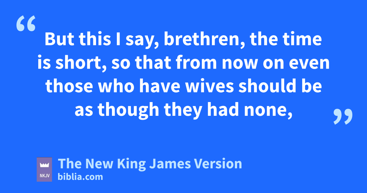 29 But zthis I say, brethren, the time is short, so that from now on even those who have wives should be as though they had none, 30 those who weep as though they did not weep, those who rejoice as though they did not rejoice, those who buy as though they did not possess, 31 and those who use this world as not amisusing it. For bthe form of this world is passing away.