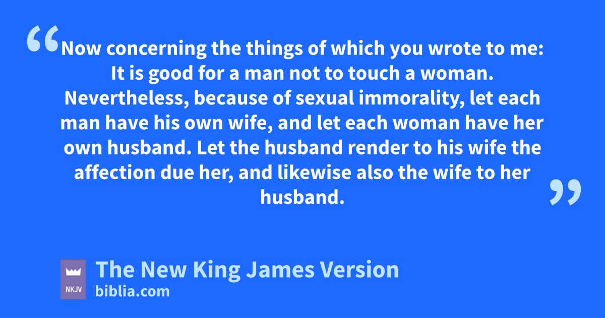 aIt is good for a man not to touch a woman. 2 Nevertheless, because of sexual immorality, let each man have his own wife, and let each woman have her own husband. 3 bLet the husband render to his wife the affection due her, and likewise also the wife to her husband. 4 The wife does not have authority over her own body, but the husband does. And likewise the husband does not have authority over his own body, but the wife does. 5 cDo not deprive one another except with consent for a time, that you may give yourselves to fasting and prayer; and come together again so that dSatan does not tempt you because of your lack of self-control. 6 But I say this as a concession, enot as a commandment. 7 For fI wish that all men were even as I myself. But each one has his own gift from God, one in this manner and another in that.