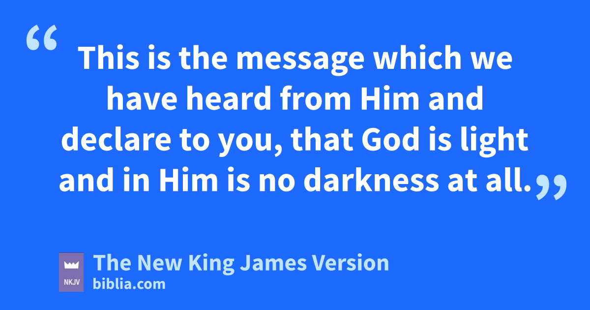 5 lThis is the message which we have heard from Him and declare to you, that mGod is light and in Him is no darkness at all. 6 nIf we say that we have fellowship with Him, and walk in darkness, we lie and do not practice the truth. 7 But if we owalk in the light as He is in the light, we have fellowship with one another, and pthe blood of Jesus Christ His Son cleanses us from all sin.