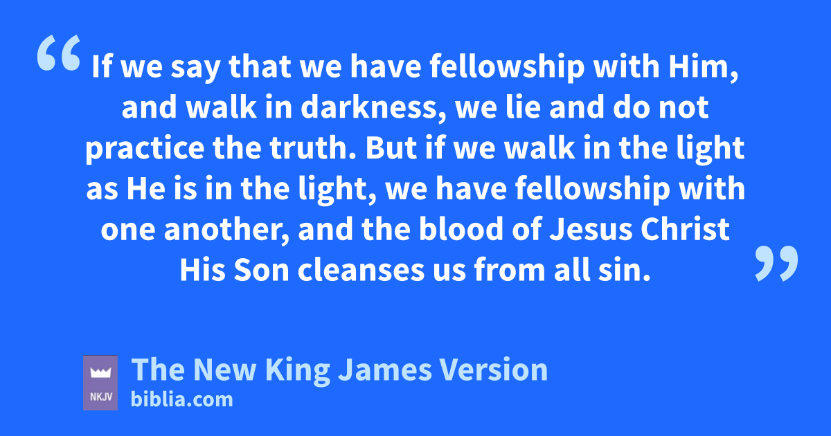 5 lThis is the message which we have heard from Him and declare to you, that mGod is light and in Him is no darkness at all. 6 nIf we say that we have fellowship with Him, and walk in darkness, we lie and do not practice the truth. 7 But if we owalk in the light as He is in the light, we have fellowship with one another, and pthe blood of Jesus Christ His Son cleanses us from all sin.