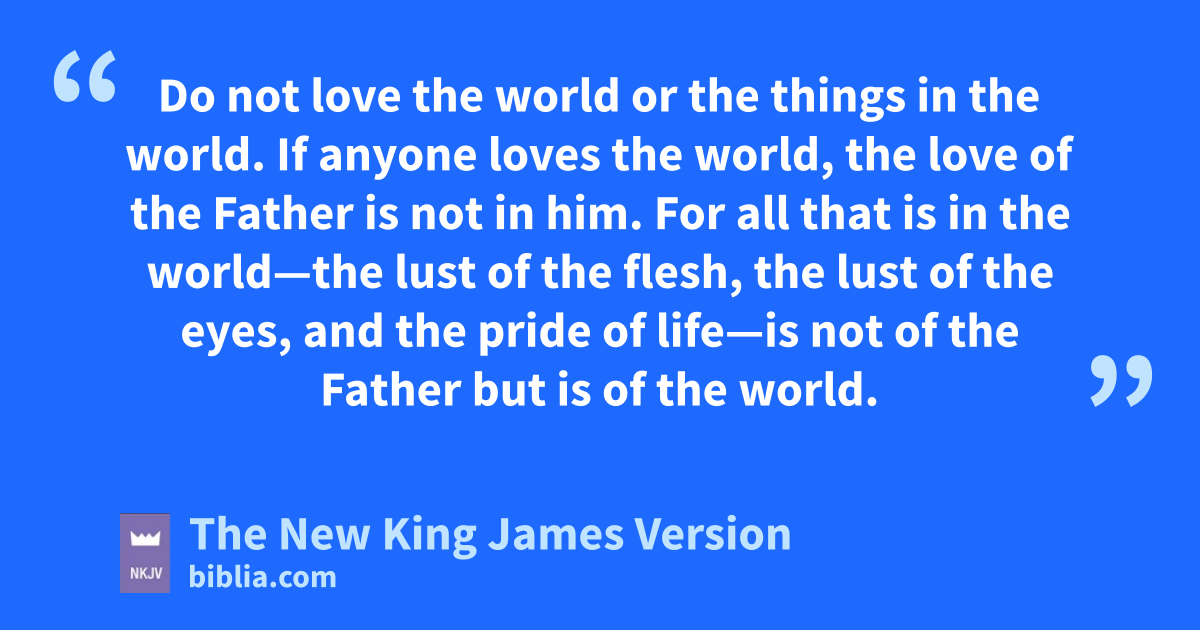 15 vDo not love the world or the things in the world. wIf anyone loves the world, the love of the Father is not in him. 16 For all that is in the world—the lust of the flesh, xthe lust of the eyes, and the pride of life—is not of the Father but is of the world. 17 And ythe world is passing away, and the lust of it; but he who does the will of God abides forever.