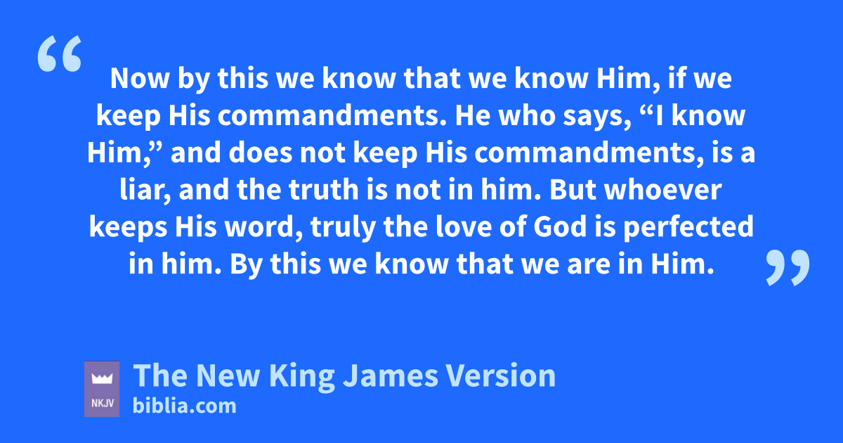 3 Now by this we know that we know Him, if we keep His commandments. 4 He who says, “I know Him,” and does not keep His commandments, is a dliar, and the truth is not in him. 5 But ewhoever keeps His word, truly the love of God 1is perfected fin him. By this we know that we are in Him. 6 gHe who says he abides in Him hought himself also to walk just as He walked.