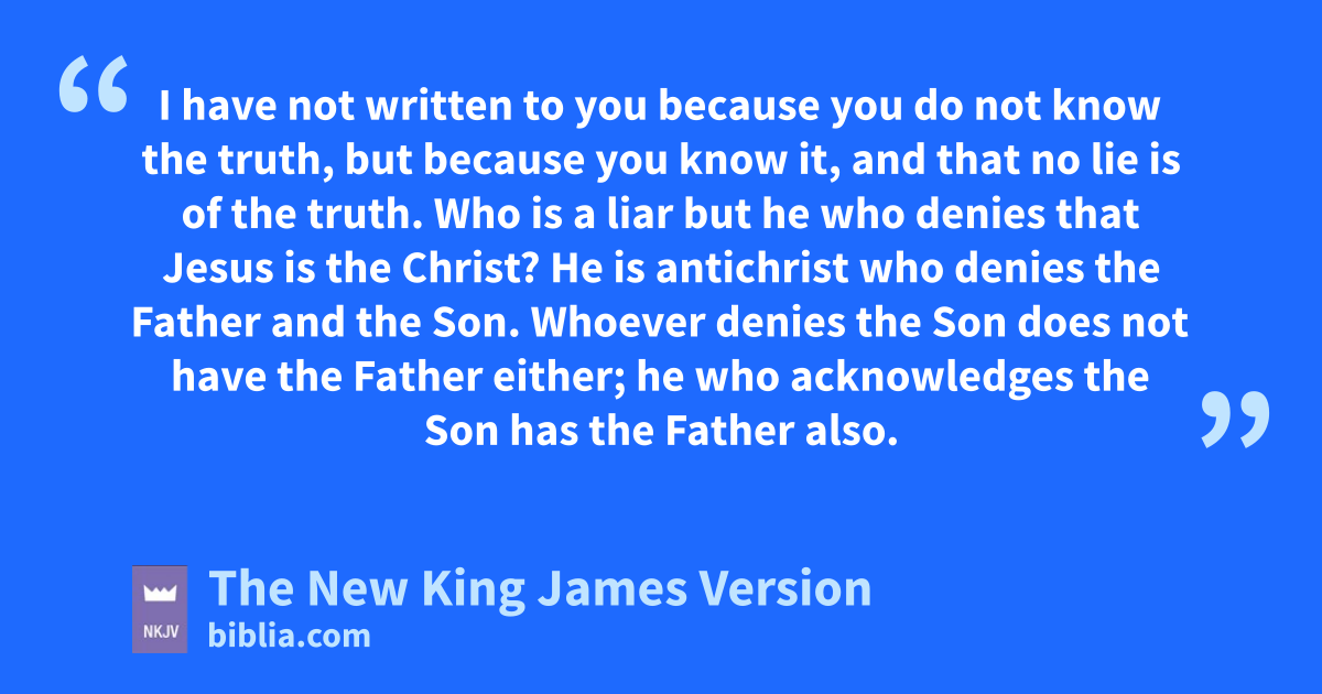 22 kWho is a liar but he who denies that lJesus is the Christ? He is antichrist who denies the Father and the Son. 23 mWhoever denies the Son does not have the nFather either; ohe who acknowledges the Son has the Father also.