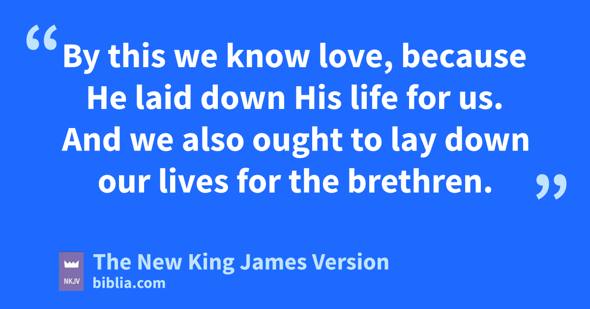 16 vBy this we know love, wbecause He laid down His life for us. And we also ought to lay down our lives for the brethren. 17 But xwhoever has this world’s goods, and sees his brother in need, and shuts up his heart from him, how does the love of God abide in him?