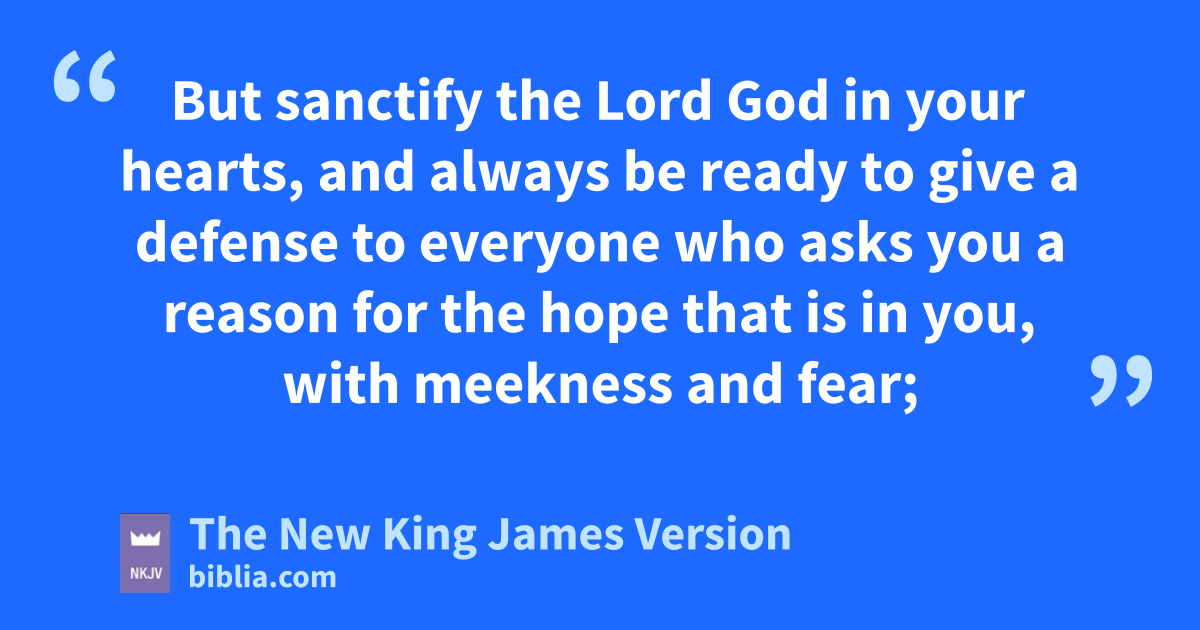 13 sAnd who is he who will harm you if you become followers of what is good? 14 tBut even if you should suffer for righteousness’ sake, you are blessed. u“And do not be afraid of their threats, nor be troubled.” 15 But 4sanctify 5the Lord God in your hearts, and always vbe ready to give a defense to everyone who asks you a reason for the whope that is in you, with meekness and fear; 16 xhaving a good conscience, that when they defame you as evildoers, those who revile your good conduct in Christ may be ashamed. 17 For it is better, if it is the will of God, to suffer for doing good than for doing evil.