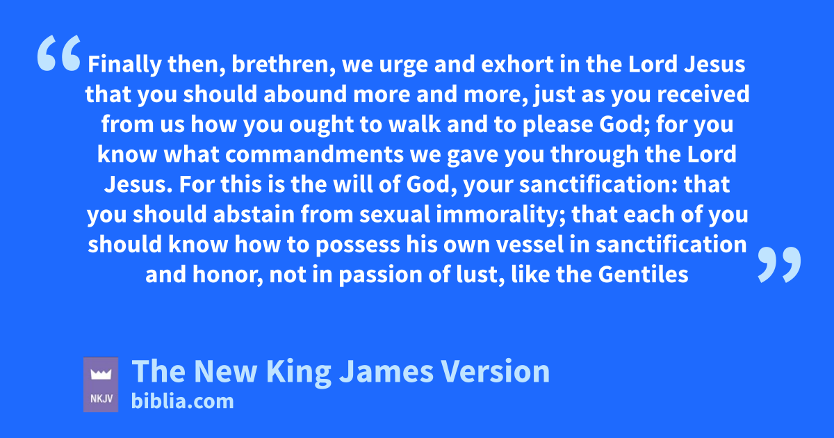 4 Finally then, brethren, we urge and exhort in the Lord Jesus athat you should abound more and more, bjust as you received from us how you ought to walk and to please God; 2 for you know what commandments we gave you through the Lord Jesus.