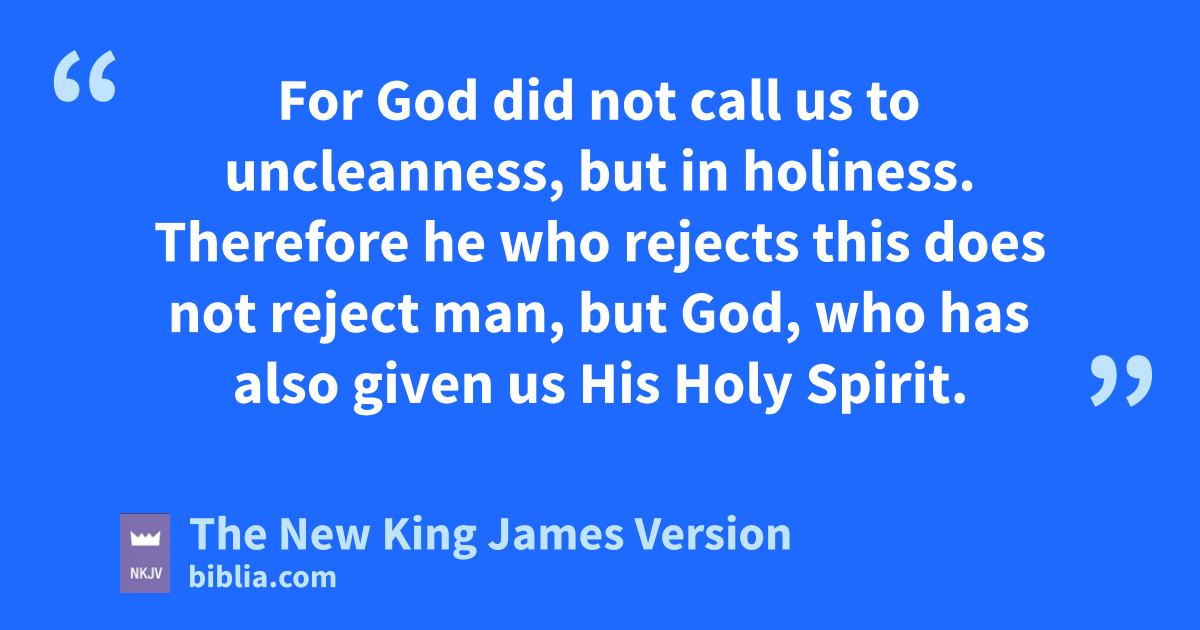 3 For this is cthe will of God, dyour sanctification: ethat you should abstain from sexual immorality; 4 fthat each of you should know how to possess his own vessel in sanctification and honor, 5 gnot in passion of lust, hlike the Gentiles iwho do not know God; 6 that no one should take advantage of and defraud his brother in this matter, because the Lord jis the avenger of all such, as we also forewarned you and testified. 7 For God did not call us to uncleanness, kbut in holiness. 8 lTherefore he who rejects this does not reject man, but God, mwho 1has also given us His Holy Spirit.