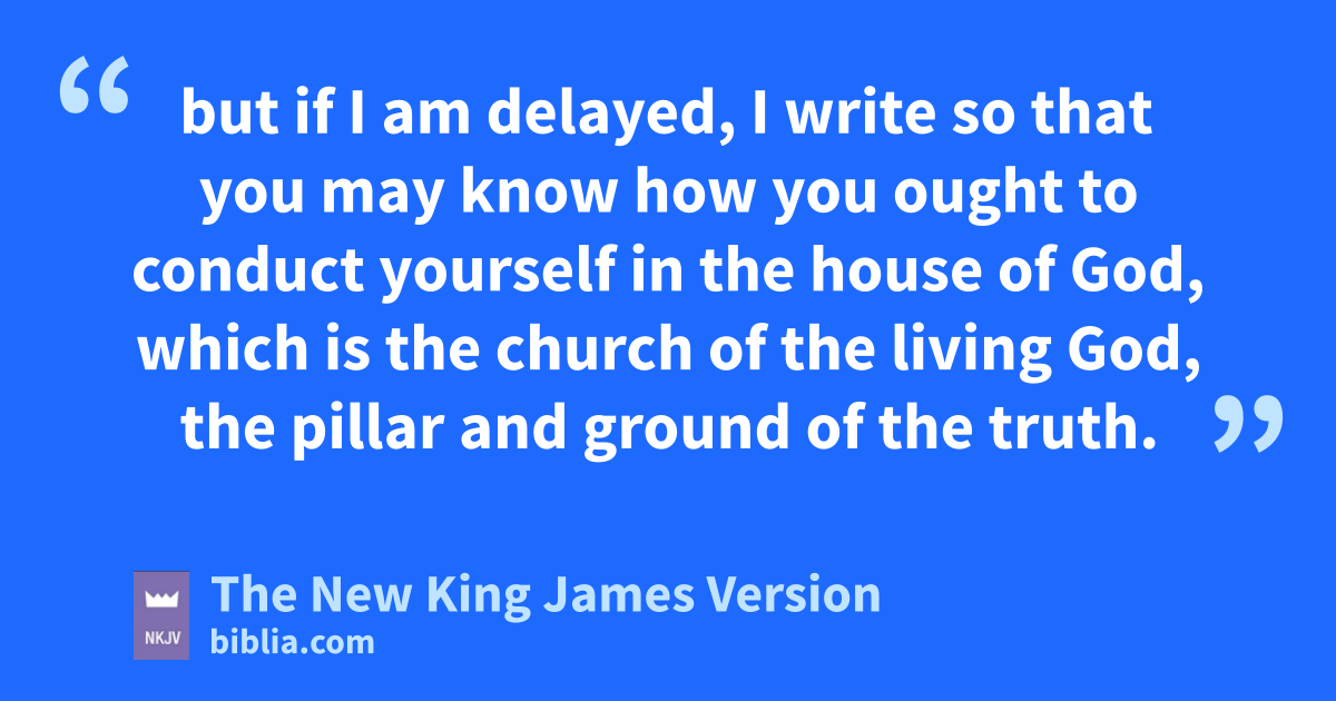 14 These things I write to you, though I hope to come to you shortly; 15 but if I am delayed, I write so that you may know how you ought to conduct yourself in the house of God, which is the church of the living God, the pillar and 8ground of the truth. 16 And without controversy great is the 9mystery of godliness: