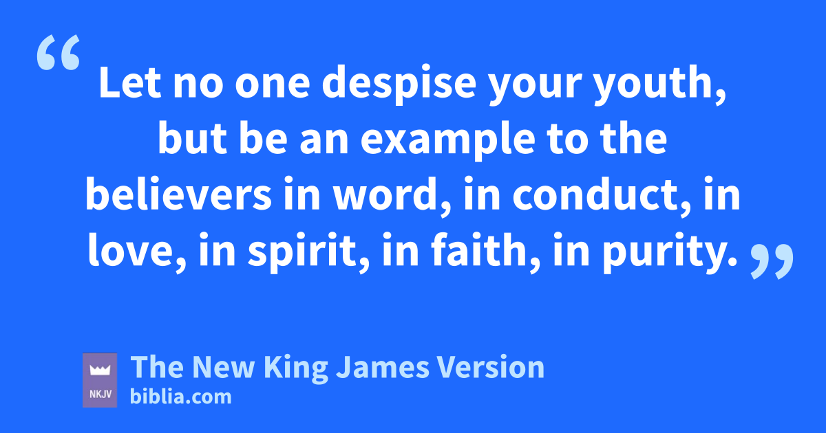 12 Let no one 4despise your youth, but be an jexample to the believers in word, in conduct, in love, 5in spirit, in faith, in purity. 13 Till I come, give attention to reading, to exhortation, to 6doctrine. 14 kDo not neglect the gift that is in you, which was given to you by prophecy lwith the laying on of the hands of the eldership. 15 Meditate on these things; give yourself entirely to them, that your progress may be evident to all. 16 Take heed to yourself and to the doctrine. Continue in them, for in doing this you will save both yourself and those who hear you.