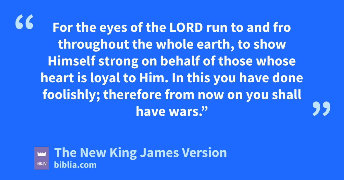 7 And at that time cHanani the seer came to Asa king of Judah, and said to him: d“Because you have relied on the king of Syria, and have not relied on the Lord your God, therefore the army of the king of Syria has escaped from your hand. 8 Were ethe Ethiopians and fthe Lubim not a huge army with very many chariots and horsemen? Yet, because you relied on the Lord, He delivered them into your ghand. 9 hFor the eyes of the Lord run to and fro throughout the whole earth, to show Himself strong on behalf of those whose heart is loyal to Him. In this iyou have done foolishly; therefore from now on jyou shall have wars.” 10 Then Asa was angry with the seer, and kput him in prison, for he was enraged at him because of this. And Asa oppressed some of the people at that time.